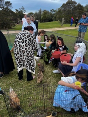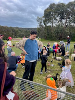 All the preparations were made, and the site was ready with: Face Painting, Merry go ‘rounds, Apple bobbing, Marshmallow toasting, Damper cooking, Petting Zoo, Music, Ice crème, Coffee, and lots of food.
